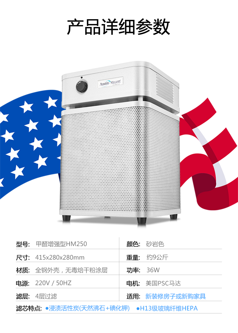 【美國原裝進(jìn)口】推薦新裝修/除甲醛/除味 適用中小面積空間 - 奧司汀空氣凈化器HM250