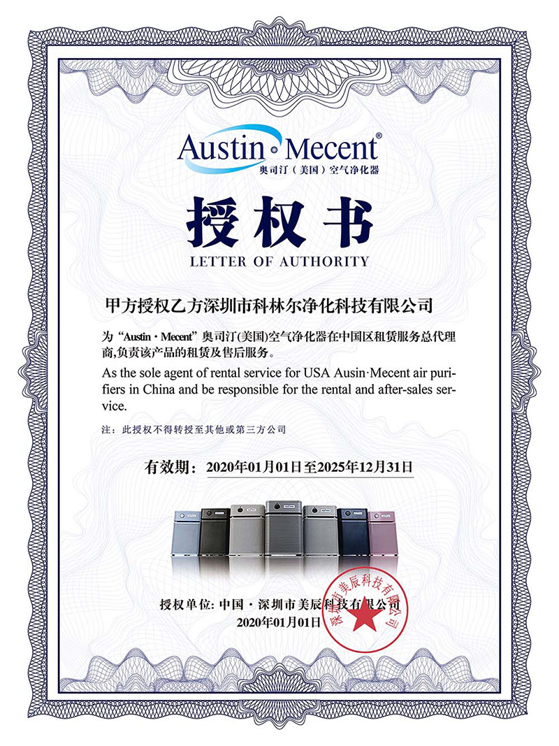 深圳市科林爾凈化科技有限公司為【美國奧司汀空氣凈化器】在中國區(qū)租賃業(yè)務推廣及租賃服務總代理商。