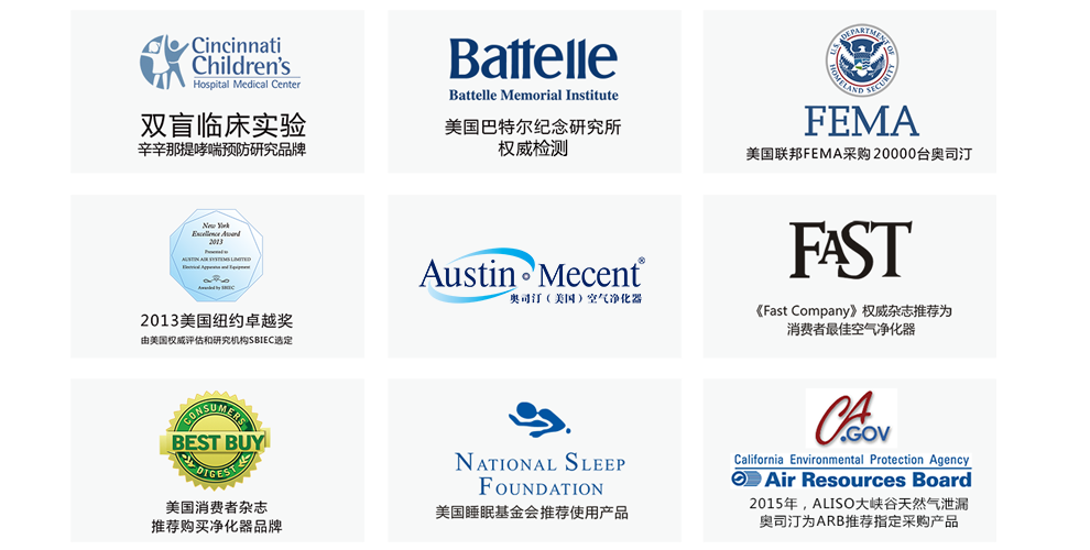 2001年,由美國國家衛(wèi)生研究院出資發(fā)起的Cincinnati Asthma Prevention Study(辛辛那提哮喘預防研究)在美國辛辛那提兒童醫(yī)院醫(yī)療中心進行隨機雙盲測試,經(jīng)過為期2年的嚴謹檢測和試驗研究,美國奧司汀空氣凈化器被證明能明顯減少哮喘發(fā)病率和降低空氣污染物水平。