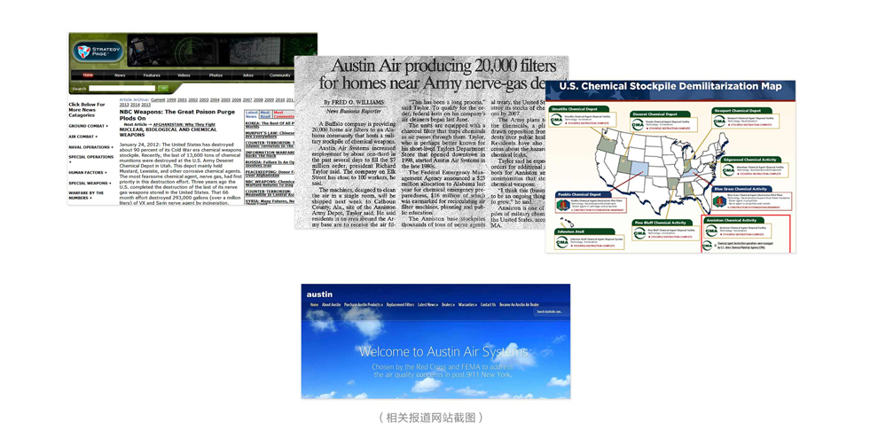 2003年 美國政府根據(jù)國際條約,需銷毀Alabama州Anniston軍事基地的上千噸神經(jīng)毒劑和芥子氣等化學物質(zhì)。因擔心化學物質(zhì)可能泄漏帶來的危害,這項計劃受到關注公共健康居民的反對。為此,根據(jù)巴特爾紀念研究所的嚴格檢測結果,美國聯(lián)邦緊急事務管理局(FEMA)啟動應急計劃,為該軍事基地附近的家庭采購20000臺奧司汀空氣凈化器,以保障居民身體健康。